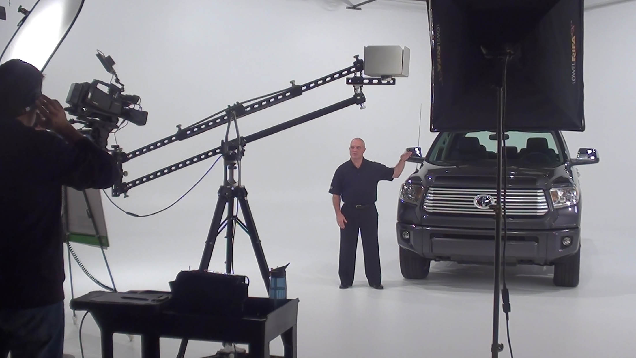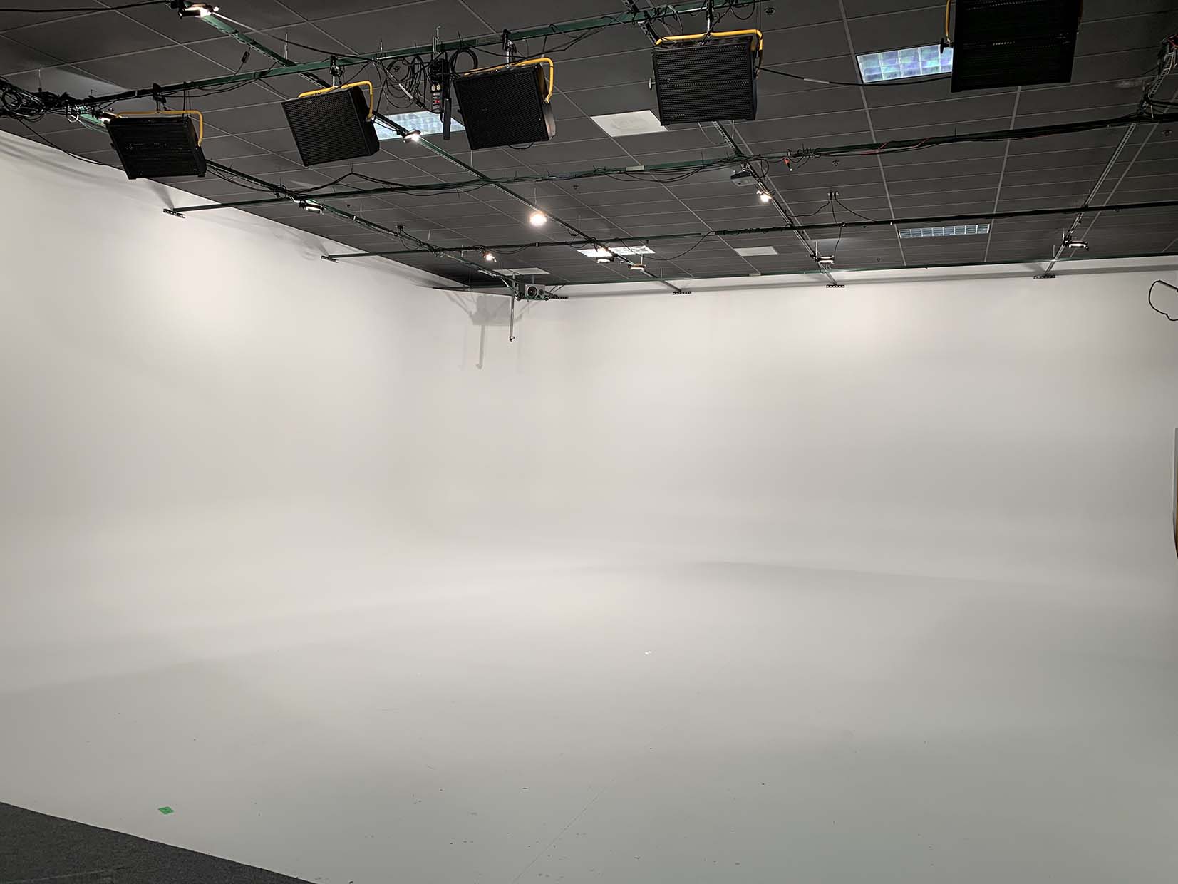 The main video studio has a huge hard cyc wall, large green screen, talk show set, and much more. It’s large enough to shoot cars, trucks, tractors, etc.